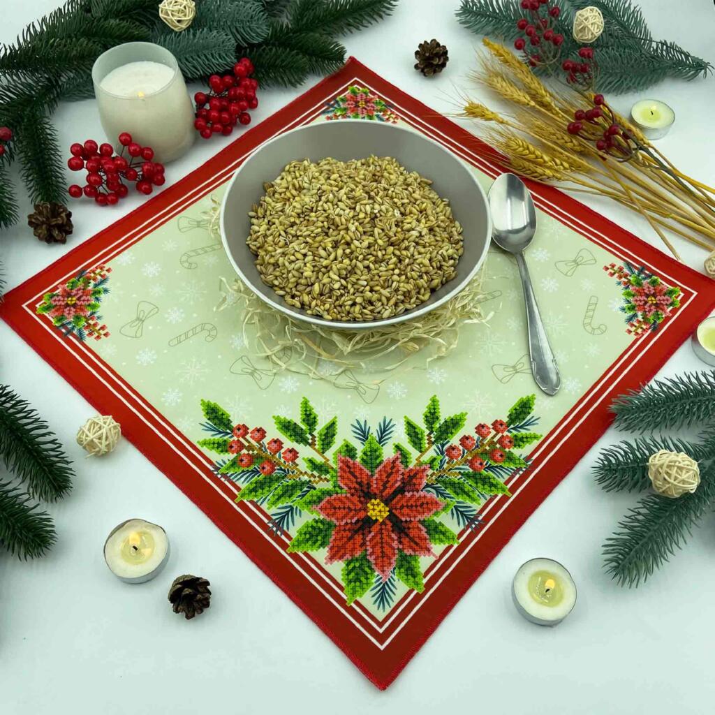 ТБ_СПВ_204 Virena Набір для вишивки бісером - Серветка різдвяна з різдвяними квітами 40x40 см (габардин)