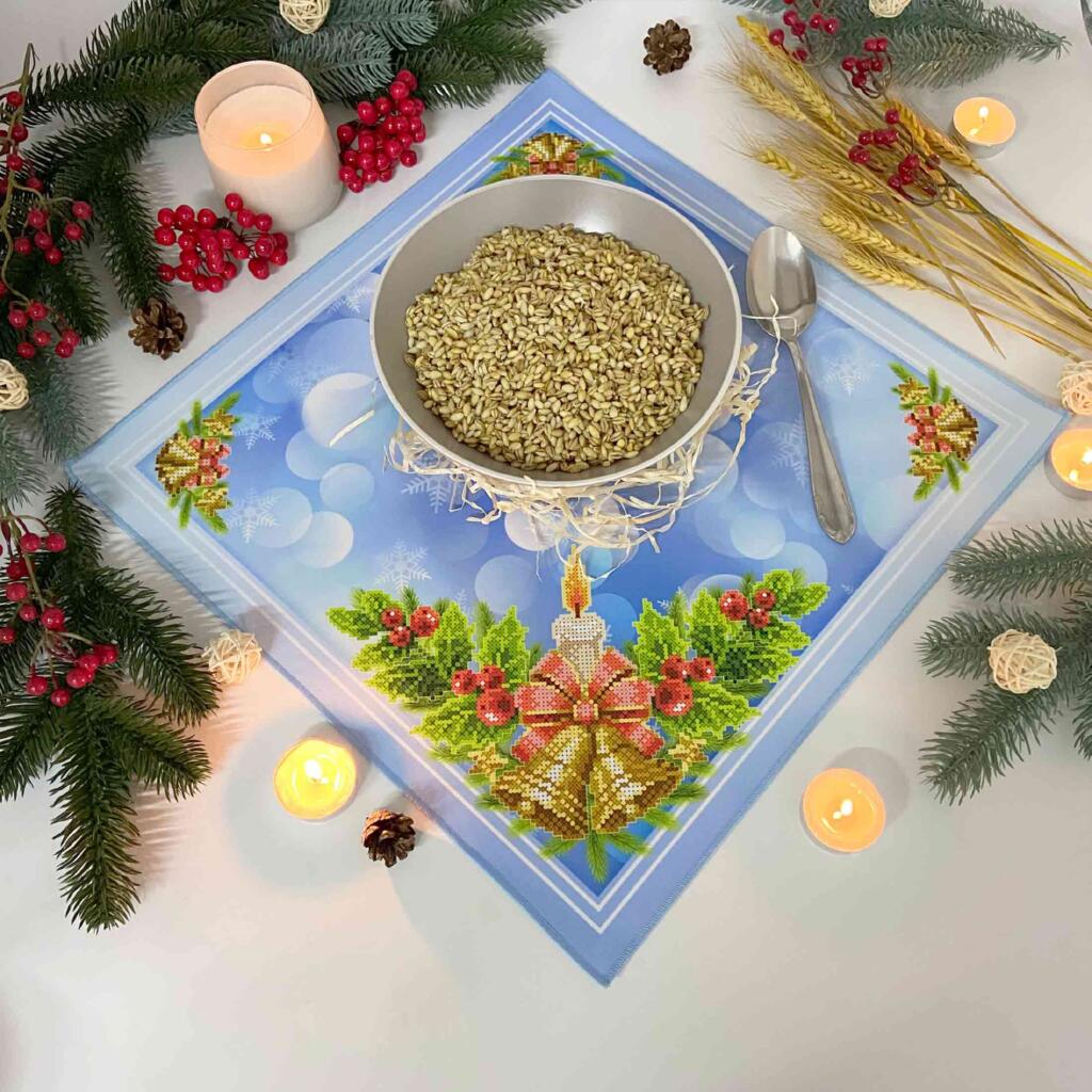 ТБ_СПВ_205 Virena Набір для вишивки бісером - Серветка різдвяна зі свічкою та дзвіночками 40x40 см (габардин)