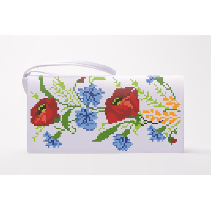 КЛ024шБ1301k Барвиста вишиванка Набір для вишивки бісером - Клатч Польові квіти 21x13 см шовк, білий