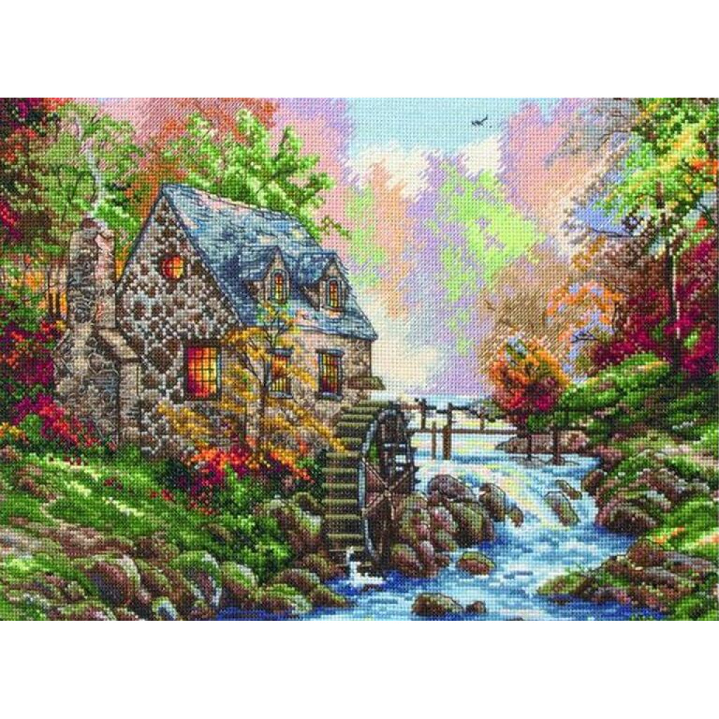 01216 Anchor Набір для вишивки рахунковим хрестиком - Водяний млин Cobblestone Mill 32x32 см, Aida 16