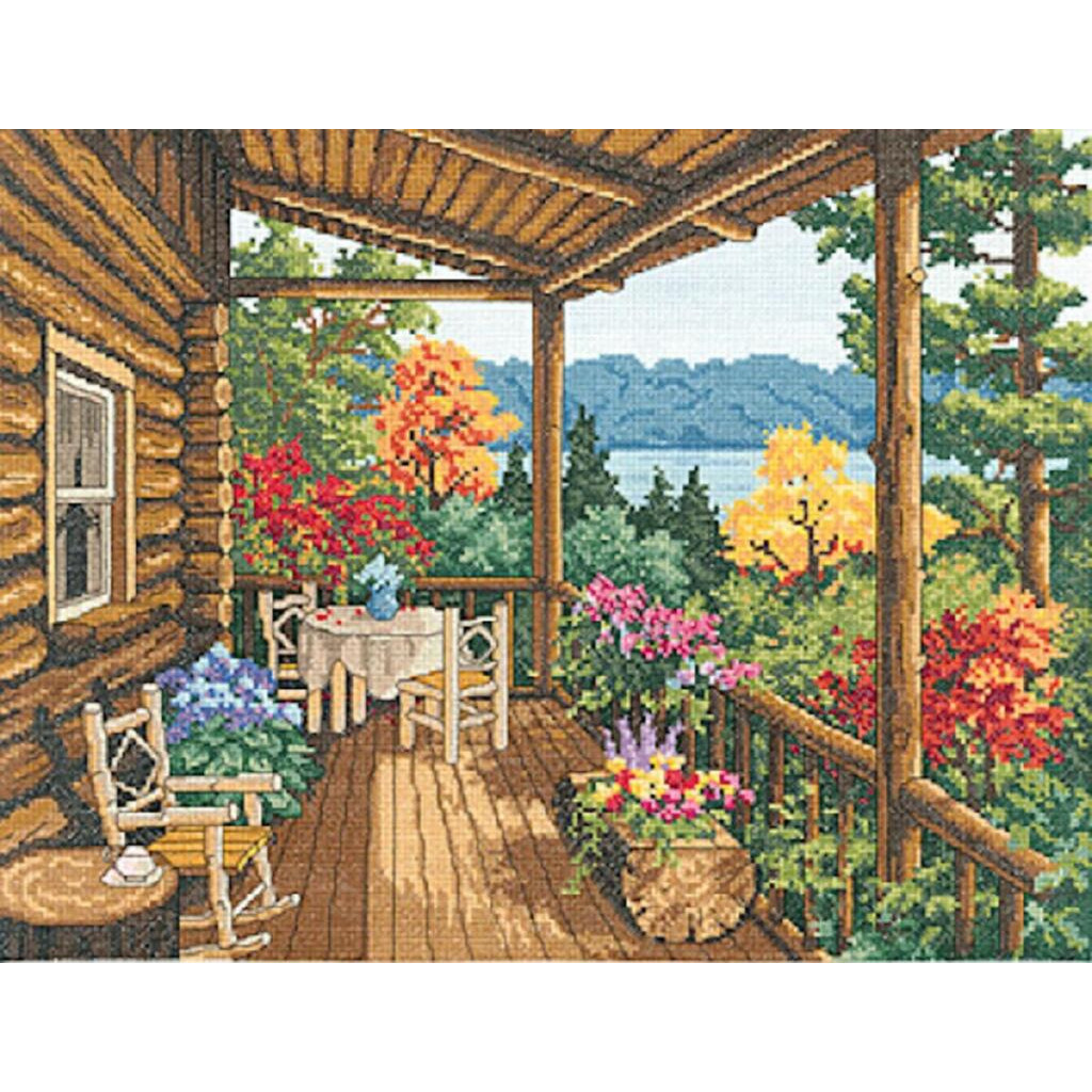 032-0100 Janlynn Набір для вишивки рахунковим хрестиком - Крита веранда дерев'яної хатини 40,6x30,5 см, Aida 14