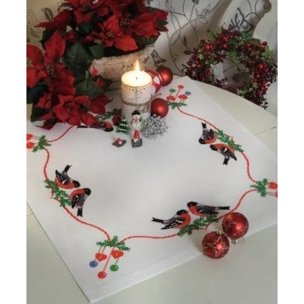 03507 Anchor Набір для вишивки рахунковим хрестиком - Снігурі та Різдво Bullfinch & Xmas 65x65 см, Aida 14