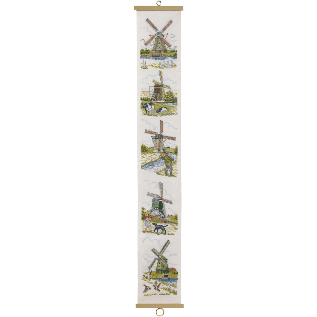 13-344 Eva Rosenstand Набір для вишивки рахунковим хрестиком - 5 Голландських млинів 16х110 см, Льон 26 ct