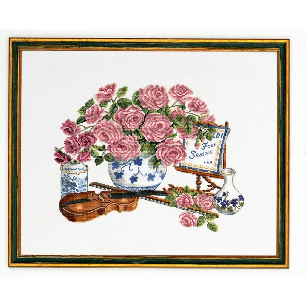 14-103 Eva Rosenstand Набір для вишивки рахунковим хрестиком - Троянди та скрипка 40х50 см, Льон 26 ct