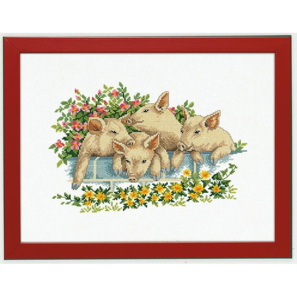 14-105 Eva Rosenstand Набір для вишивки рахунковим хрестиком - 4 порося 30х40 см, Льон 26 ct