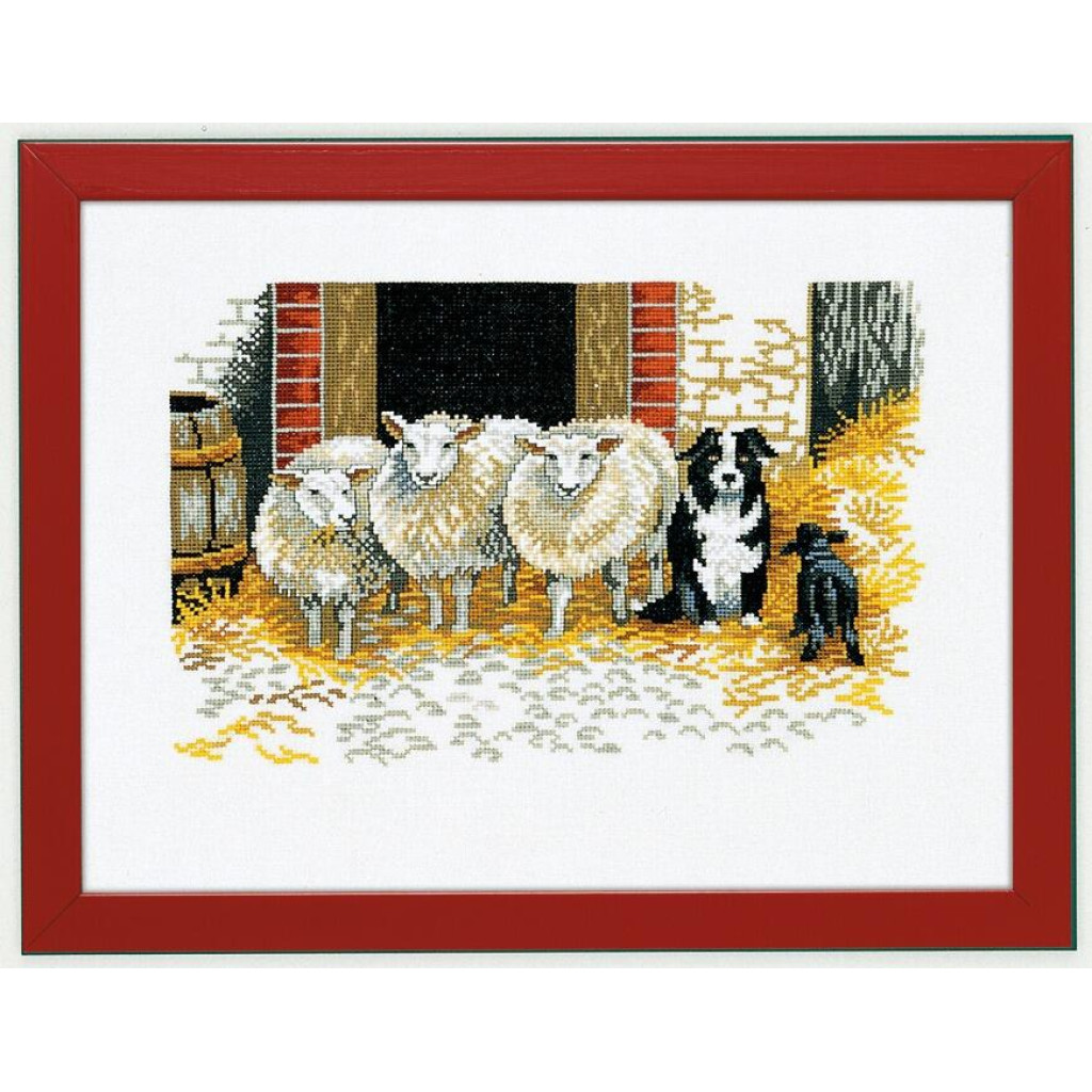 14-107 Eva Rosenstand Набір для вишивки рахунковим хрестиком - Овечки і собака 30х40 см, Льон 26 ct