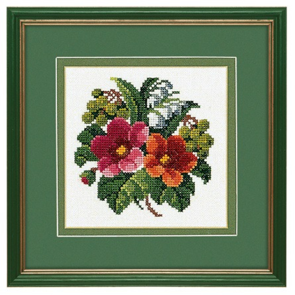 14-117 Eva Rosenstand Набір для вишивки рахунковим хрестиком - Рожеві, оранжеві квіти 20х20 см, Льон 26 ct