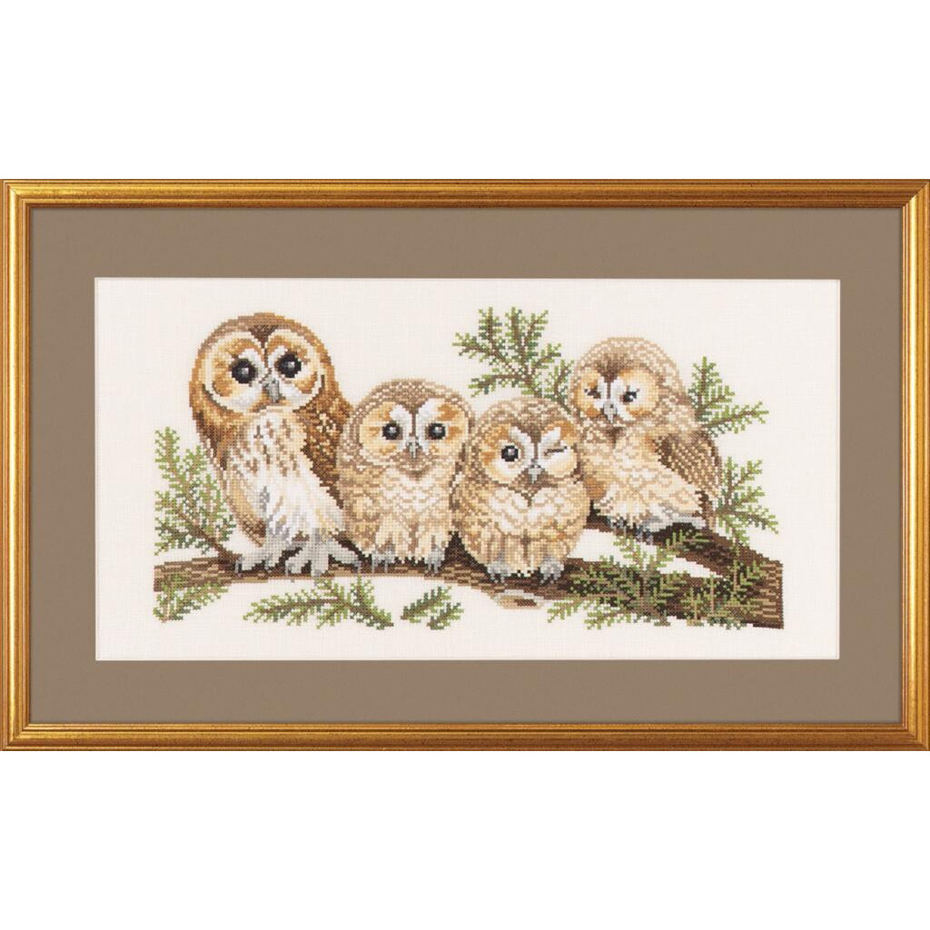 14-146 Eva Rosenstand Набір для вишивки рахунковим хрестиком - 4 сови 30х50 см, Льон 26 ct