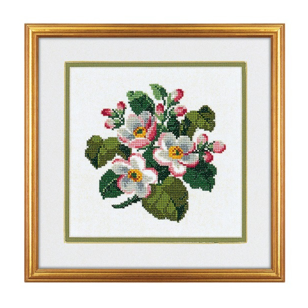 14-168 Eva Rosenstand Набір для вишивки рахунковим хрестиком - Яблуневий цвіт 25х25 см, Льон 26 ct