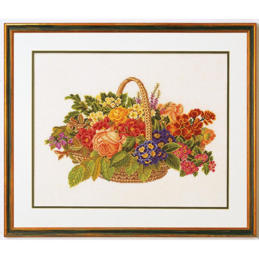 14-186 Eva Rosenstand Набір для вишивки рахунковим хрестиком - Кошик з квітами 50х60 см, Льон 26 ct