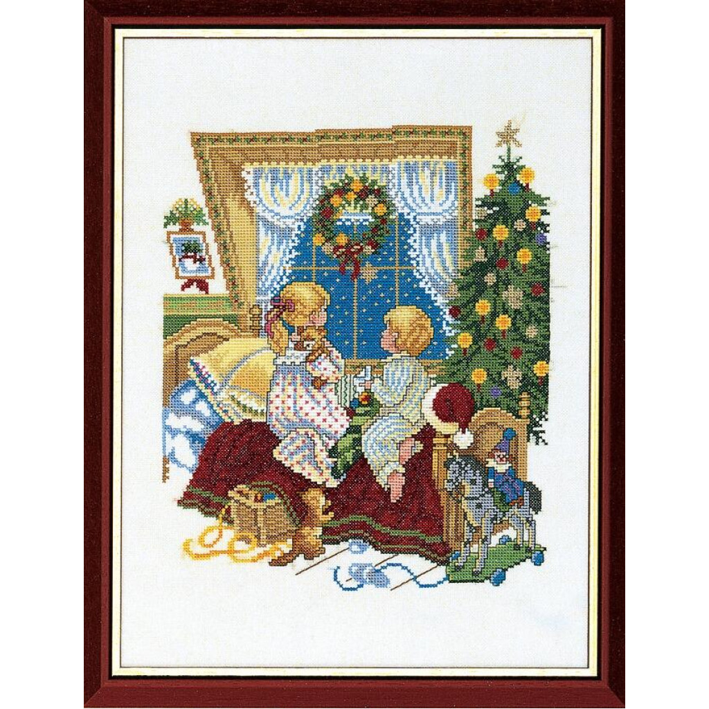 14-205 Eva Rosenstand Набір для вишивки рахунковим хрестиком - Діти біля ліжка 30х40 см, Льон 26 ct
