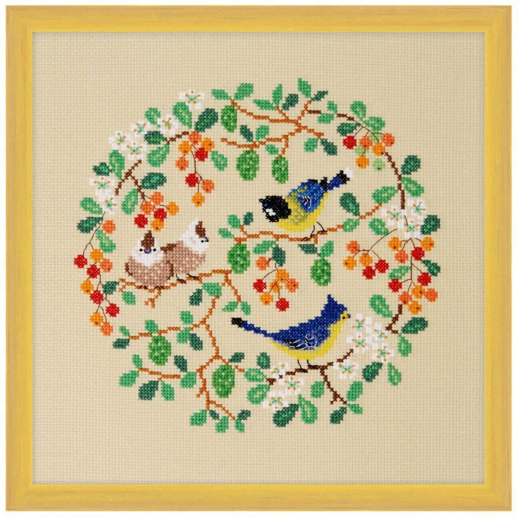 2030410 Xiu Crafts Набір для вишивки рахунковим хрестиком - Дрізд і зяблик 25,4x25,4 см, Aida 14 ct