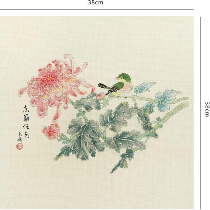 2030821 Xiu Crafts Набір для вишивки рахунковим хрестиком - Хризантеми 38x38 см, Aida 18 ct