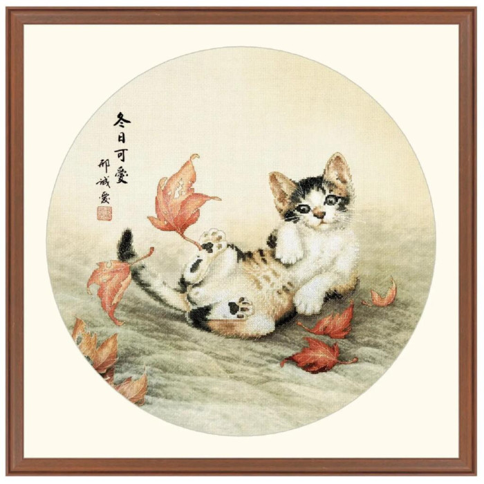 2032301 Xiu Crafts Набір для вишивки рахунковим хрестиком - Грайливе кошеня 40,5х40,5 см, Aida №14