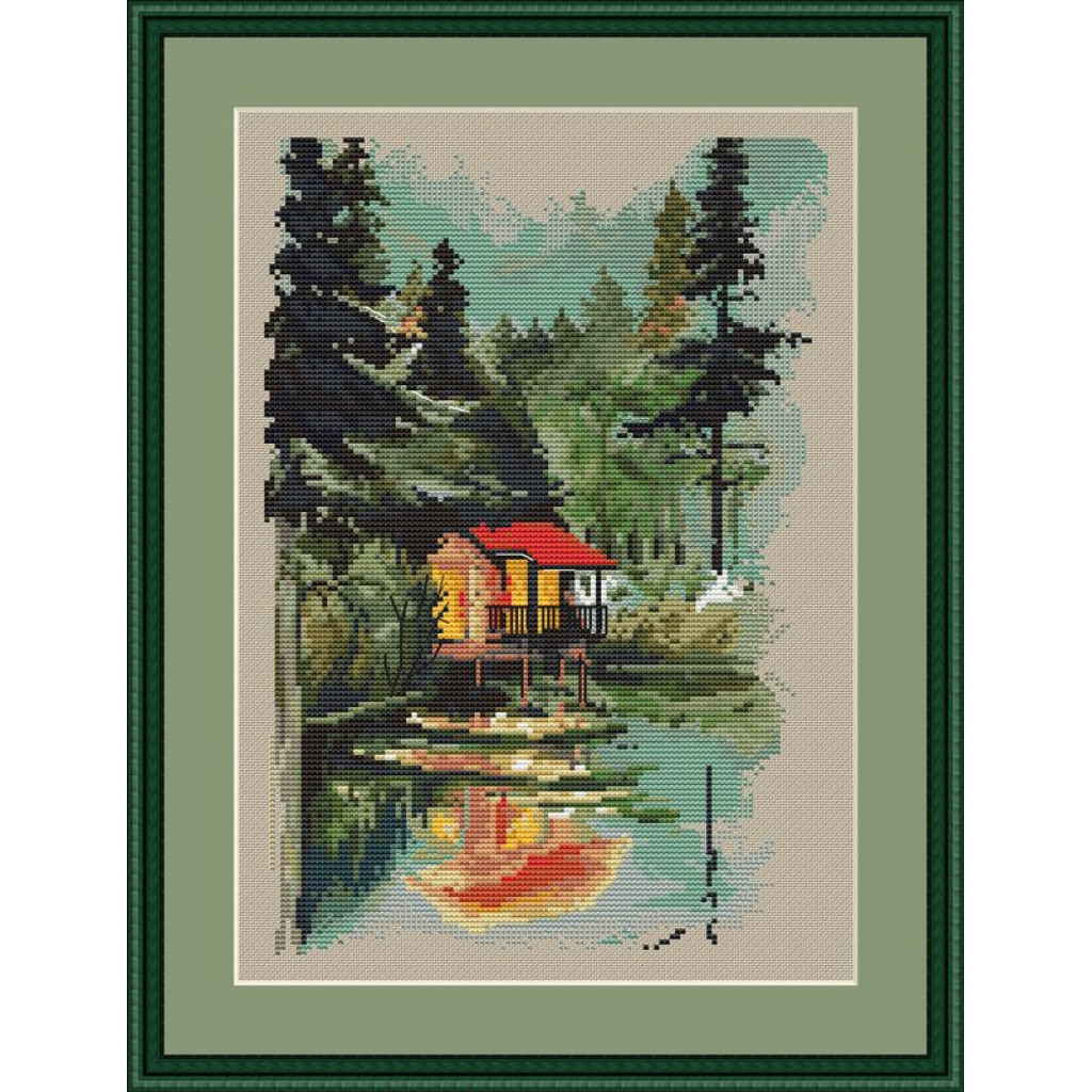 220001Р Little Stitch Набір для вишивки рахунковим хрестиком - Будиночок в лісі 20,1x29,2 см, Linda 27 ct (айворі)