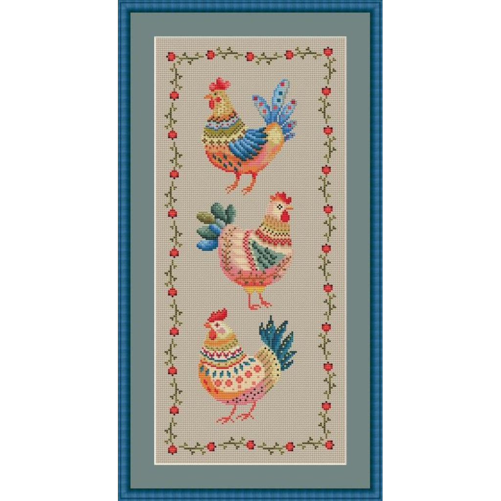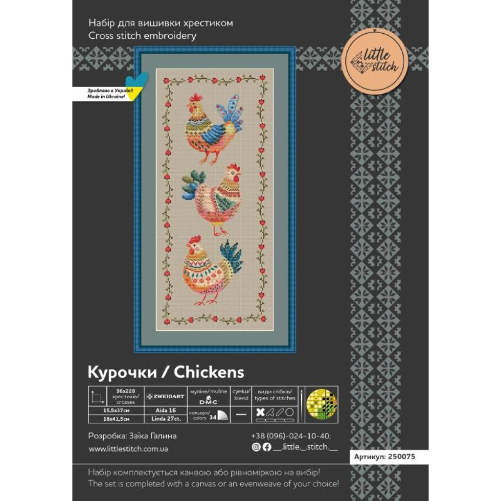 250075 Little Stitch Набір для вишивки рахунковим хрестиком - Курочки 37x15,5 см, Aida 16 (айворі)