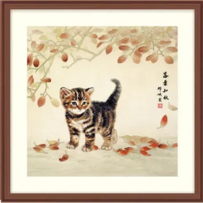 2801603 (2032303) Xiu Crafts Набір для вишивки рахунковим хрестиком - Котик та листя 48х48 см, Aida 16 ct (канва з фоном)