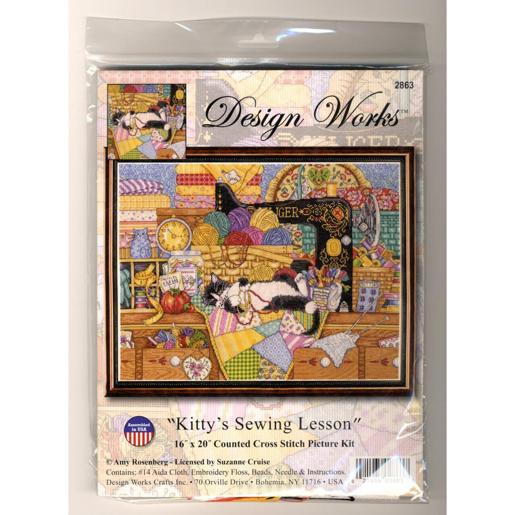 2863 Design Works Набір для вишивки рахунковим хрестиком - Урок шиття для кошенят 50,8x40,6 см, Aida14