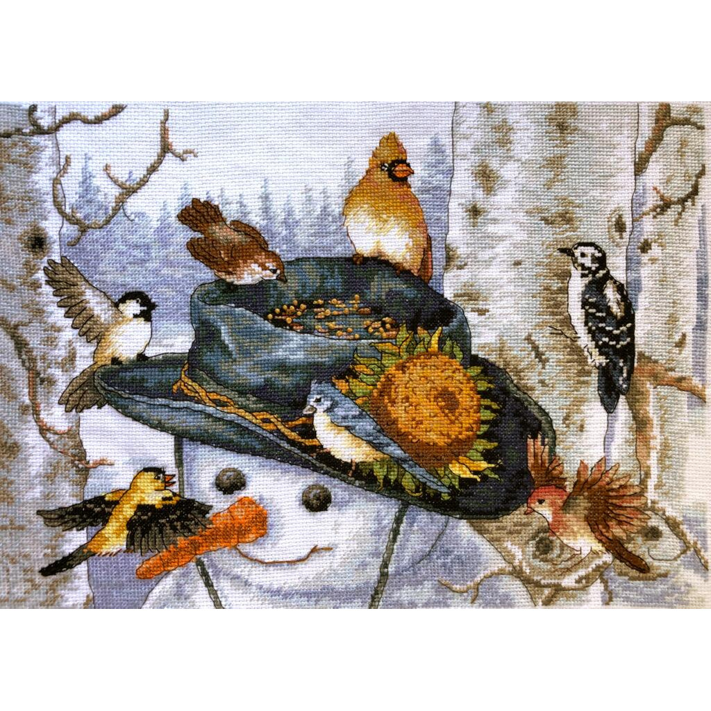 35137 Dimensions Набір для вишивки рахунковим хрестиком - Сніговик з соняшником 36x25 см, Aida 14 ct