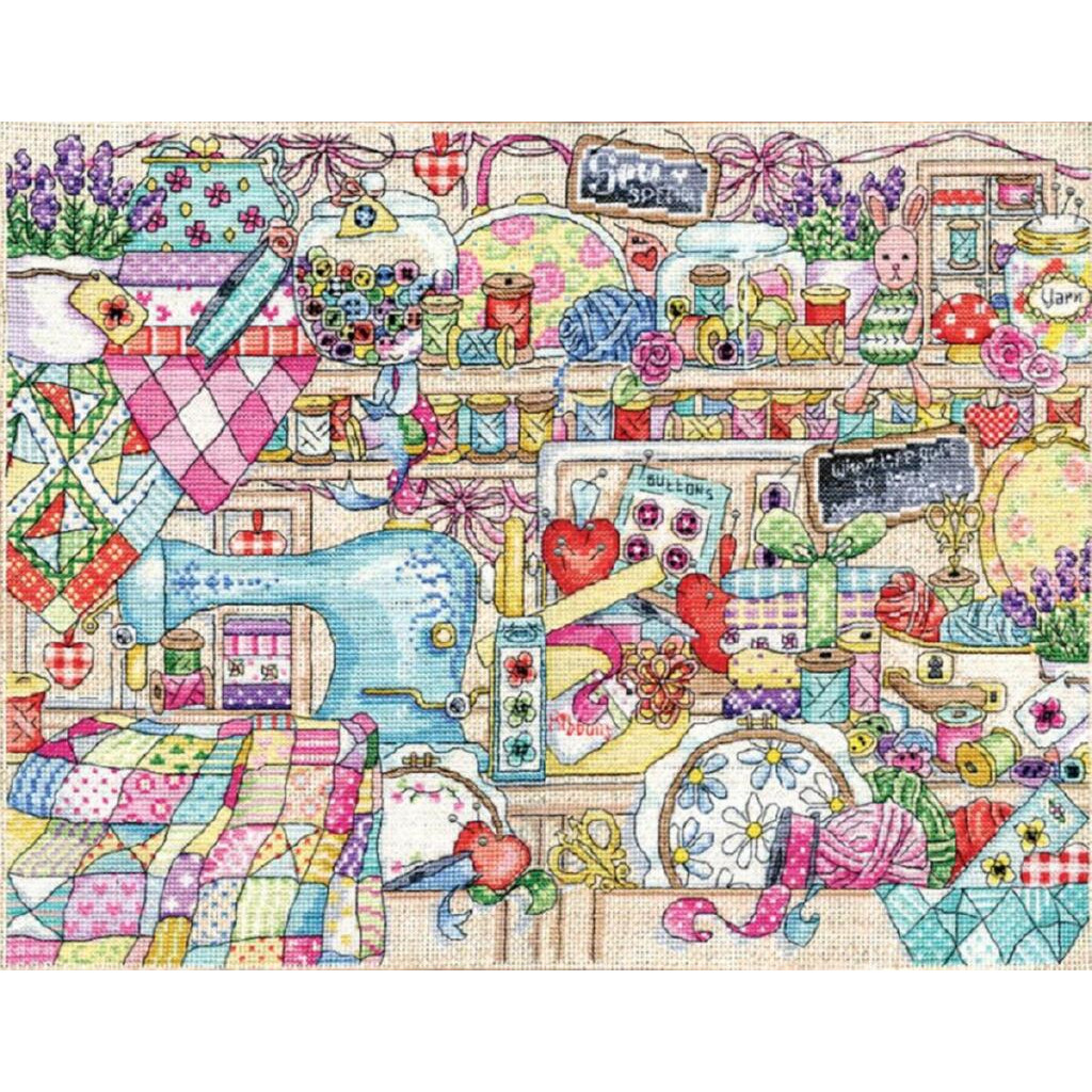 3554 Design Works Набір для вишивки рахунковим хрестиком - Кімната для вінтажного шиття 40,64x30,48 см, Aida14