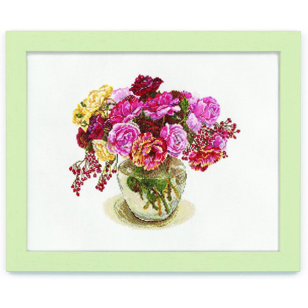 552108 Cosmo Fujico Набір для вишивки рахунковим хрестиком - Квіткова композиція з трояндами 38x30 см, Aida16