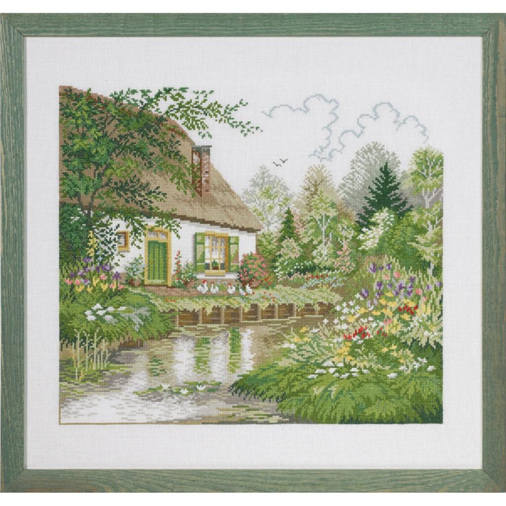 74-184 Eva Rosenstand Набір для вишивки рахунковим хрестиком - Будинок і лісове озеро 52х49 см, Льон 26 ct