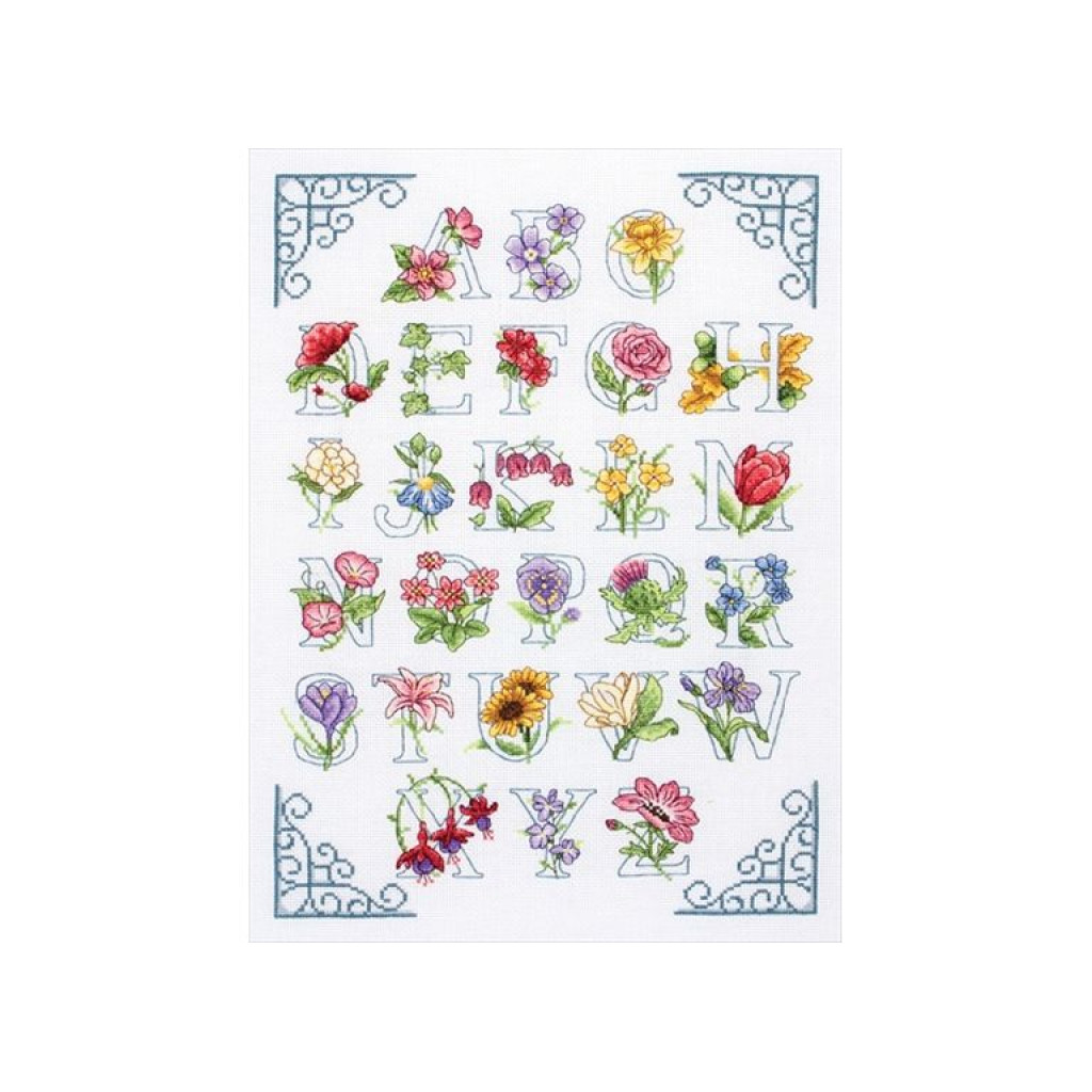 ACS20 Anchor Набір для вишивки рахунковим хрестиком - Квітковий алфавіт Floral Alphabet 39x27 см, Aida 16