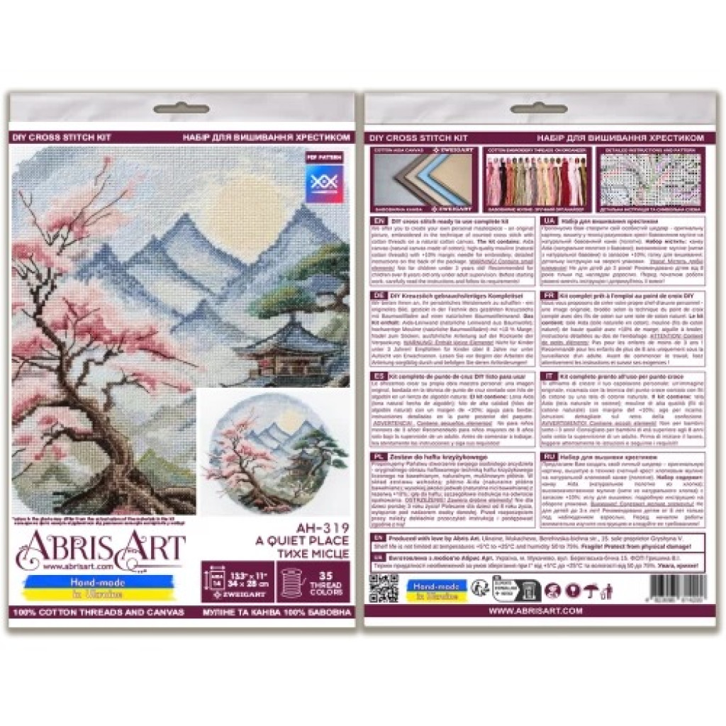 AH-319 Абрис Арт Тихе місце — набір для вишивки рахунковим хрестиком на канві Aida 14 ct. У комплекті передбачений великий відріз канви з достатнім запасом для зручного процесу вишивки та подальшого оформлення роботи. Схема спеціально розроблена дизайнерами виробника для цього сюжету, має чітку структуру та зрозуміле позначення символів, тому підходить як для досвідчених майстринь, так і для тих, хто тільки починає знайомство з технікою хрестика.
