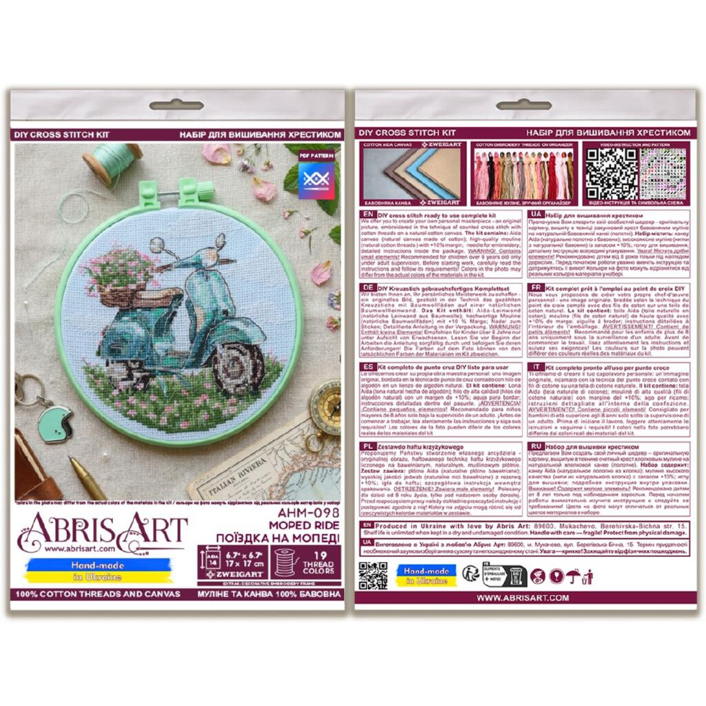 AHM-098 Абрис Арт Набір для вишивки рахунковим хрестиком - Поїздка на мопеді 15x15 см, Aida14