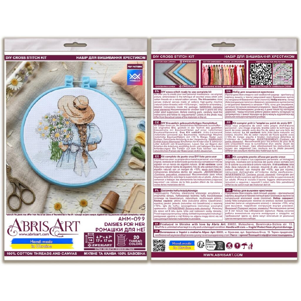 AHM-099 Абрис Арт Набір для вишивки рахунковим хрестиком - Ромашки для неї 15x15 см, Aida14