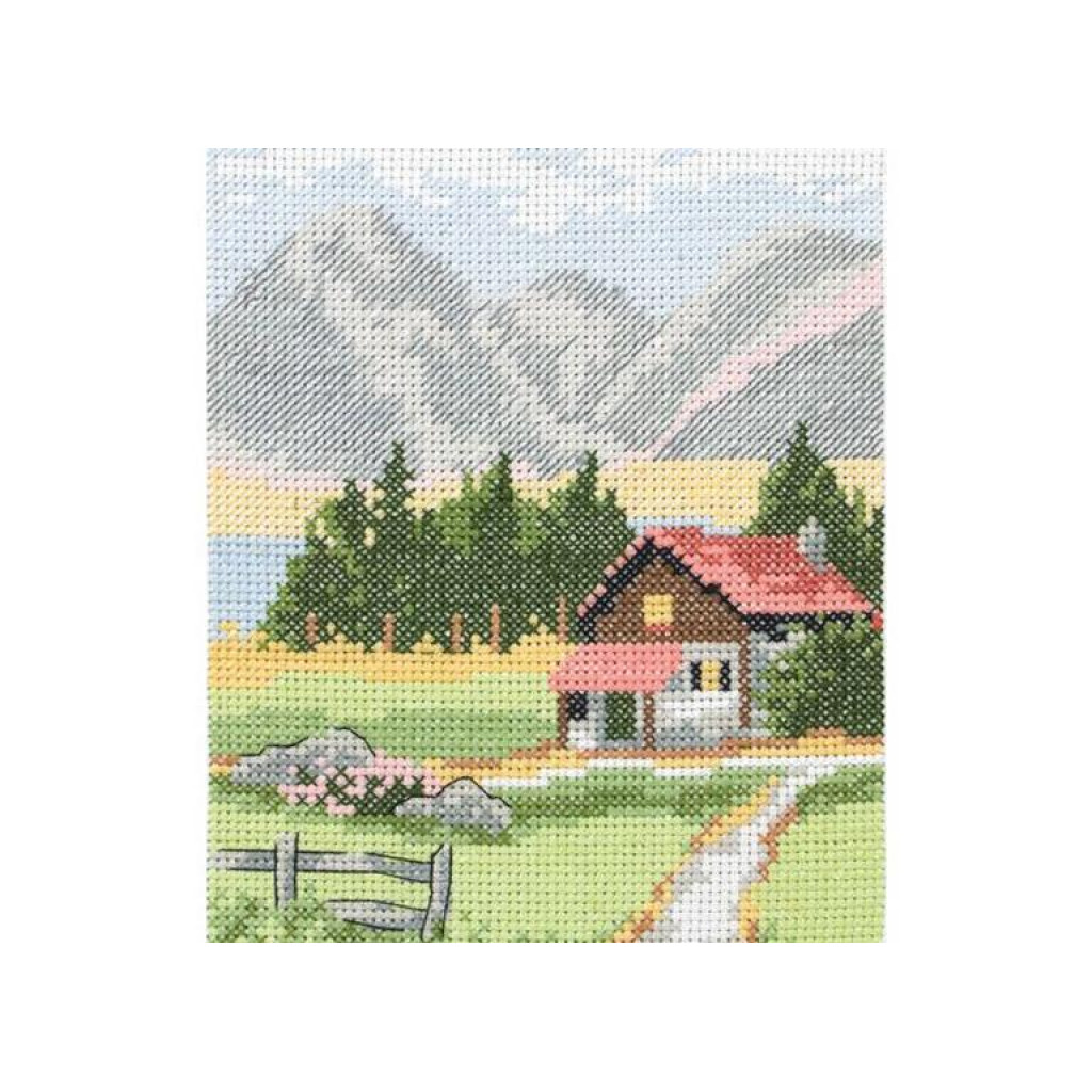 AK128 Anchor Набір для вишивки рахунковим хрестиком - Будиночок у Альпах Alpine Lodge 23x16 см, Aida 14