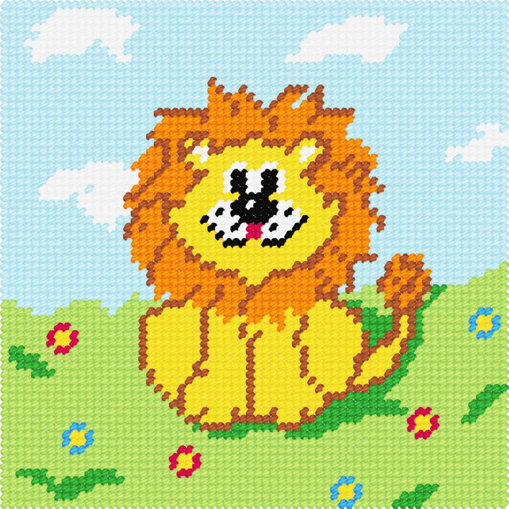 BA02 Чарівниця Набір для вишивки друкованим xрестиком - Левеня 15x15 см (сxема на страміне)