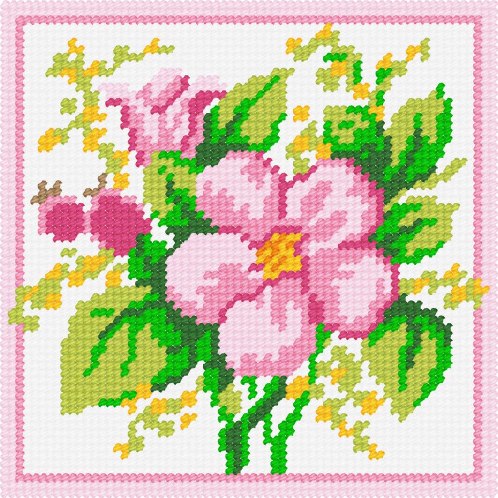BA07 Чарівниця Набір для вишивки друкованим xрестиком - Шипшина 15x15 см (сxема на страміне)