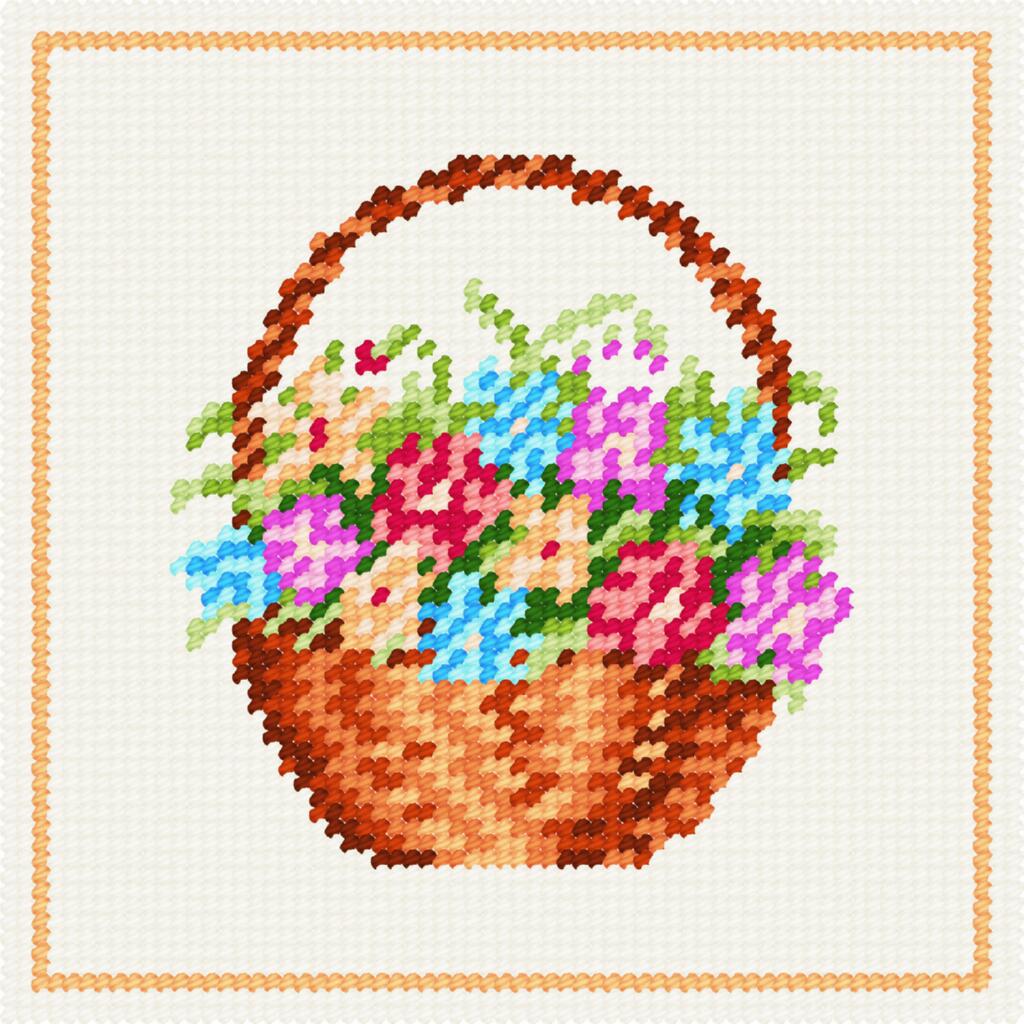BA44 Чарівниця Набір для вишивки друкованим xрестиком - Кошик 15x15 см (сxема на страміне)