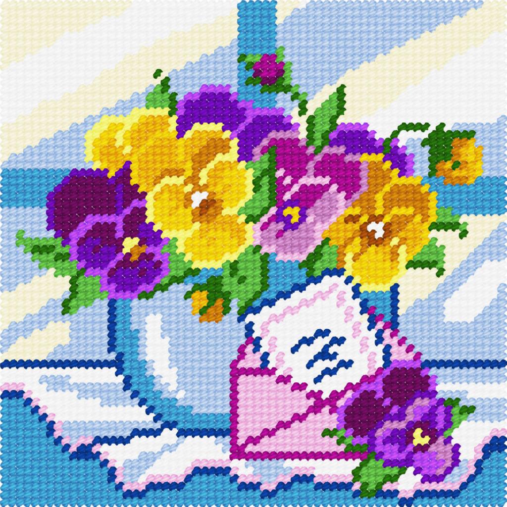 BA64 Чарівниця Набір для вишивки друкованим хрестиком - Квіткове привітання 15x15 см (схема на канві)