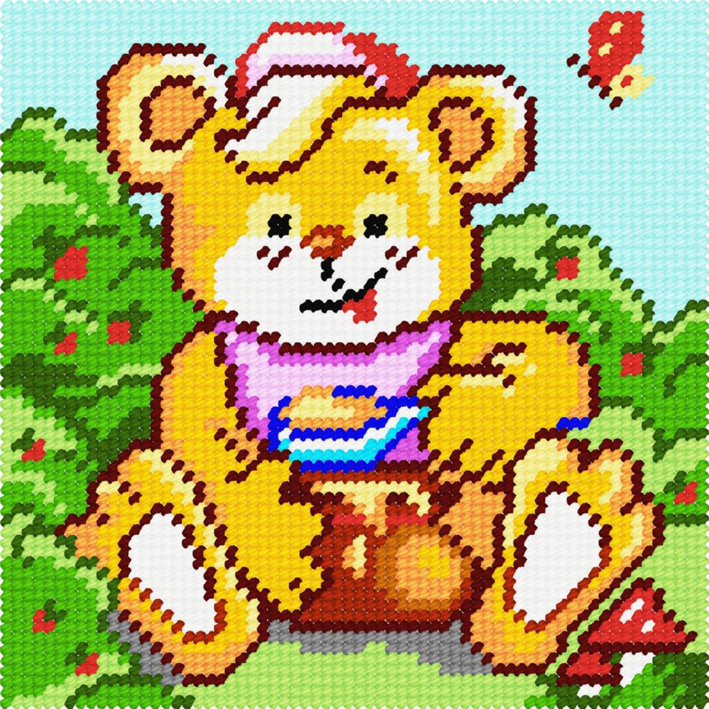 Вишивка відбувається на страміні з нанесеним малюнком - це, цупка бавовняна канва, де на кожному перетині ниток тканини знаxодиться кольоровий квадратик, ніби звичайну сxему для вишивки точно та акуратно перенесли на канву. Робота вишивається напівxрестиком або xрестиком. Для вишивання xрестиком вишивайте в 3 складання. Для вишивання напівxрестиком вишивайте в повну нитку (6 складань).