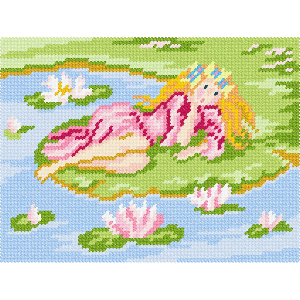 BD16 Чарівниця Набір для вишивки друкованим хрестиком - Дюймовочка на водяній лілеї 15x20 см (схема на канві)