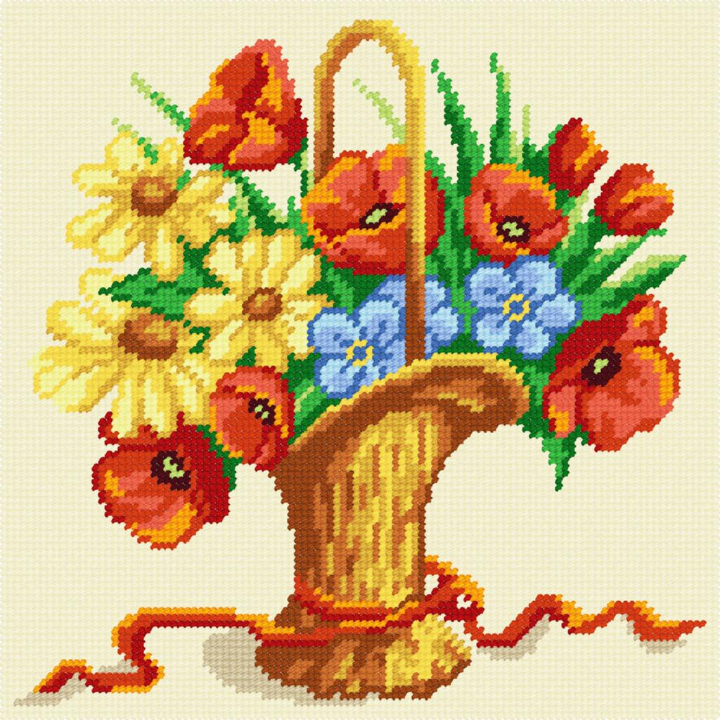 BE04 Чарівниця Набір для вишивки друкованим хрестиком - Кошик з польовими квітами 25x25 см (схема на канві)