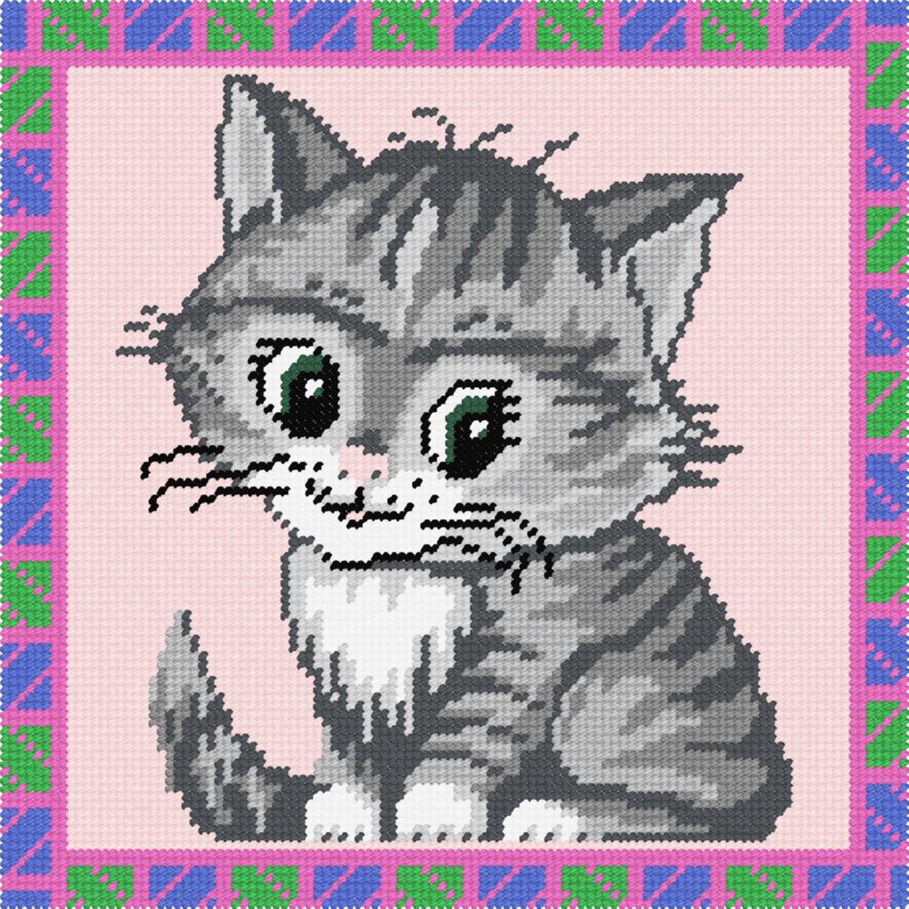 BE25 Чарівниця Набір для вишивки друкованим хрестиком - Сіре котеня 25x25 см (схема на канві)