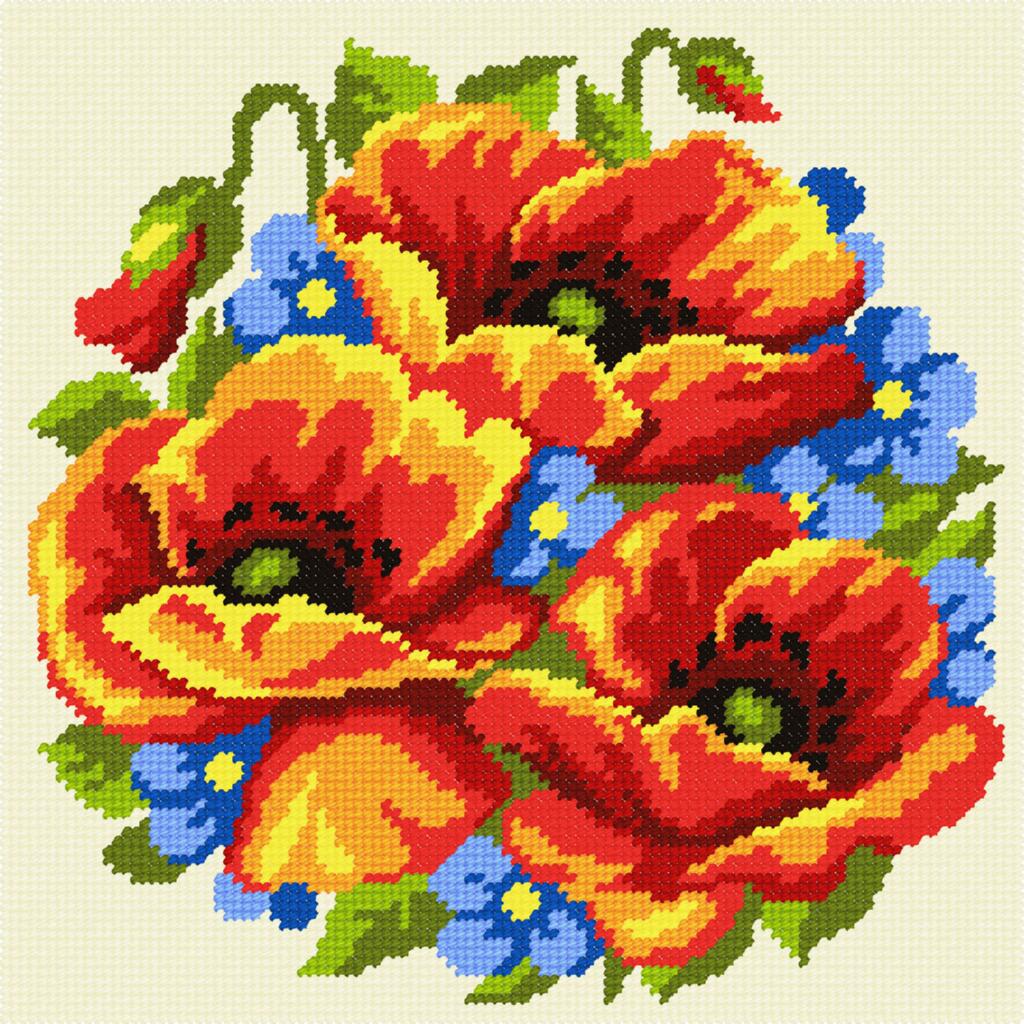 BE48 Чарівниця Набір для вишивки друкованим хрестиком - Маки і незабудки 25x25 см (схема на канві)