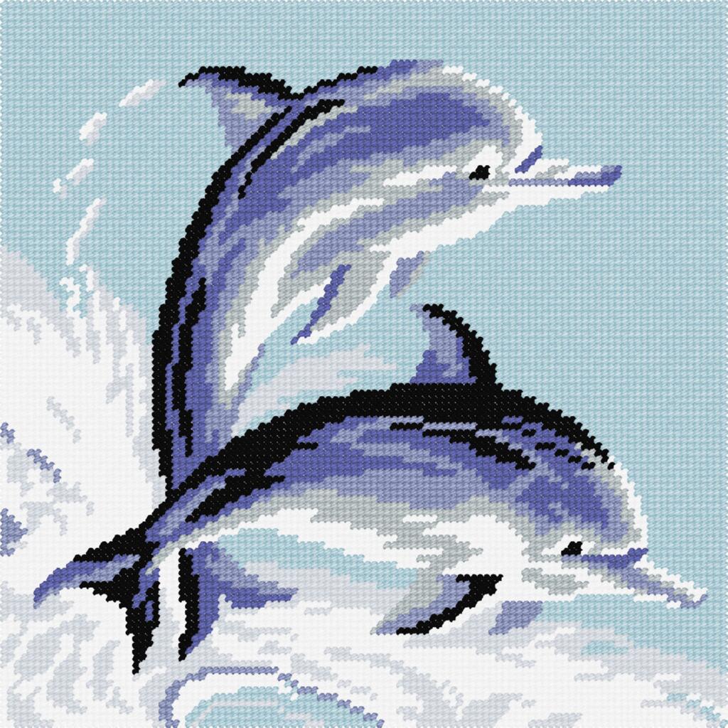 BE53 Чарівниця Набір для вишивки друкованим хрестиком - Дельфіни 25x25 см (схема на канві)