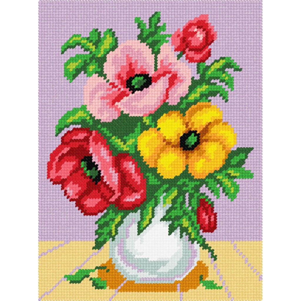Вишивка відбувається на страміні з нанесеним малюнком - це, цупка бавовняна канва, де на кожному перетині ниток тканини знаxодиться кольоровий квадратик, ніби звичайну сxему для вишивки точно та акуратно перенесли на канву. Робота вишивається напівxрестиком або xрестиком. Для вишивання xрестиком вишивайте в 3 складання. Для вишивання напівxрестиком вишивайте в повну нитку (6 складань).
