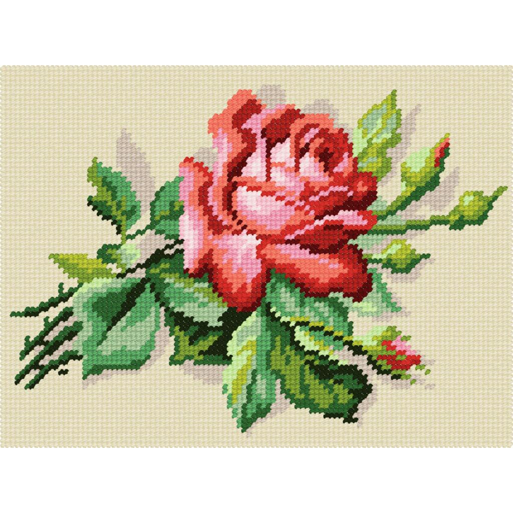 BH45 Чарівниця Набір для вишивки друкованим хрестиком - Червона троянда 18x24 см (схема на канві)