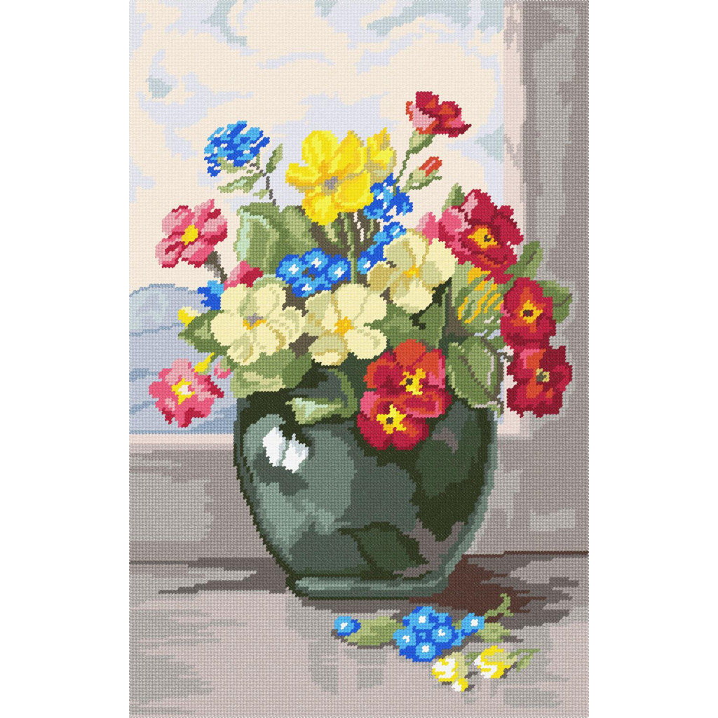 BS31 Чарівниця Набір для вишивки друкованим хрестиком - Букет примул 33x50 см (схема на страміне)