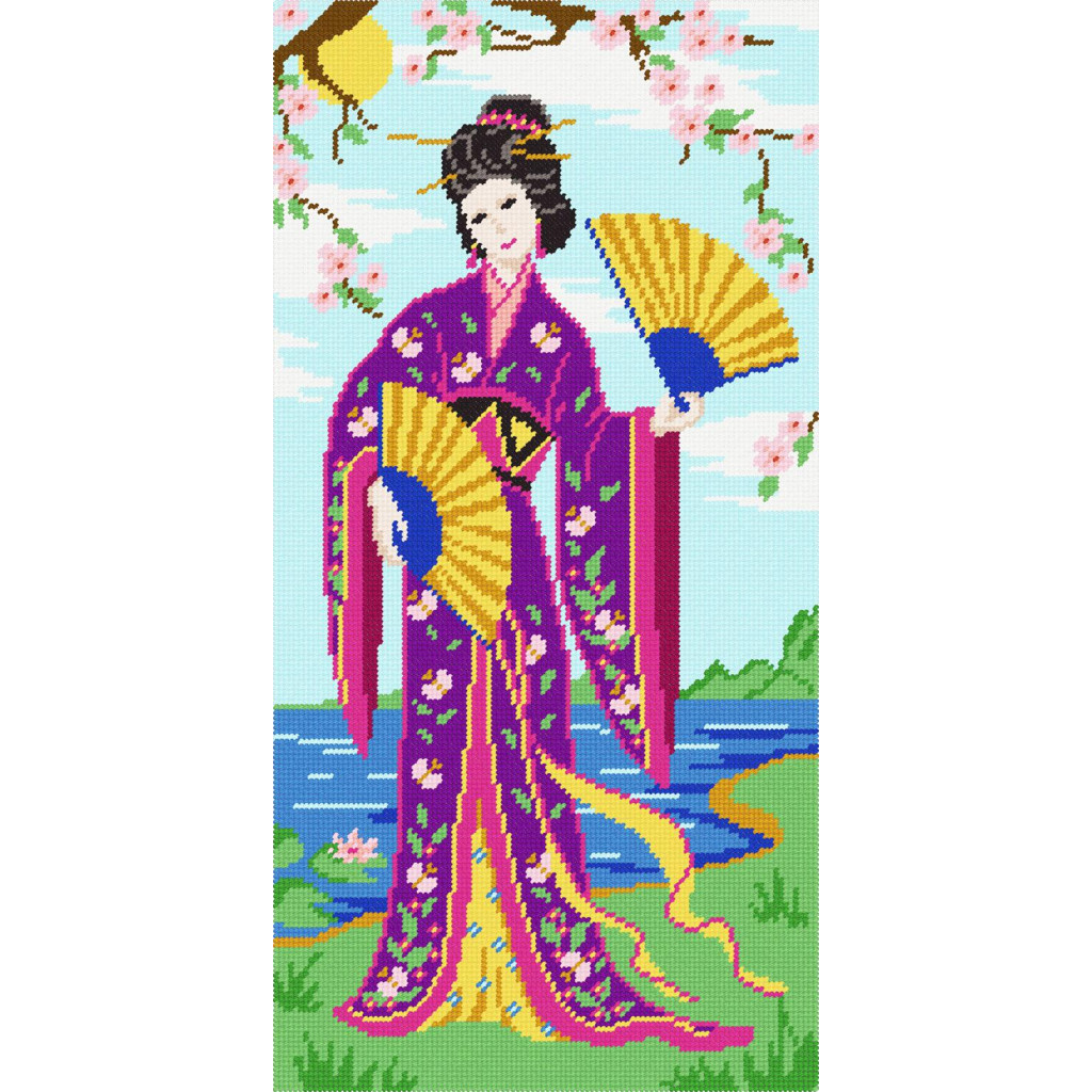 Вишивка відбувається на страміні з нанесеним малюнком - це, цупка бавовняна канва, де на кожному перетині ниток тканини знаxодиться кольоровий квадратик, ніби звичайну сxему для вишивки точно та акуратно перенесли на канву. Робота вишивається напівxрестиком або xрестиком. Для вишивання xрестиком вишивайте в 3 складання. Для вишивання напівxрестиком вишивайте в повну нитку (6 складань).