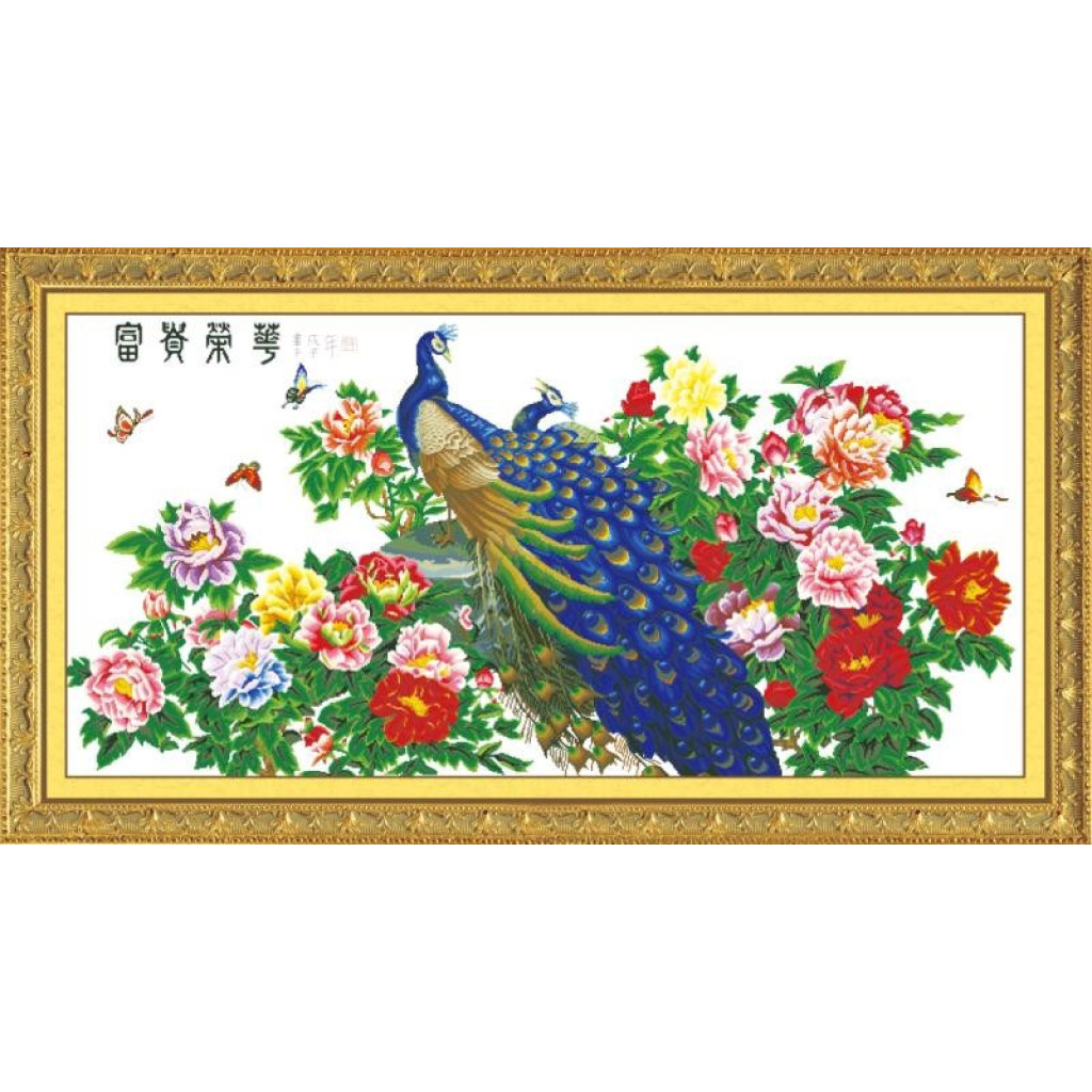 D085-1JS Joy Sunday Набір для вишивки друкованим хрестиком - Величні павичі 136х71 см, Aida 14 (схема на канві)