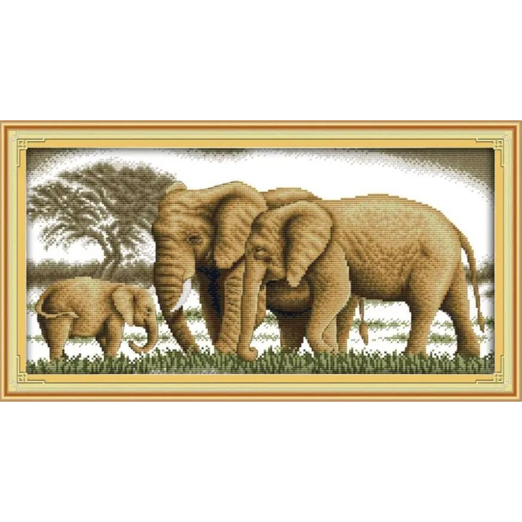 D713JS Joy Sunday Набір для вишивки друкованим хрестиком - Сім'я слонів 28x49 см, Aida14