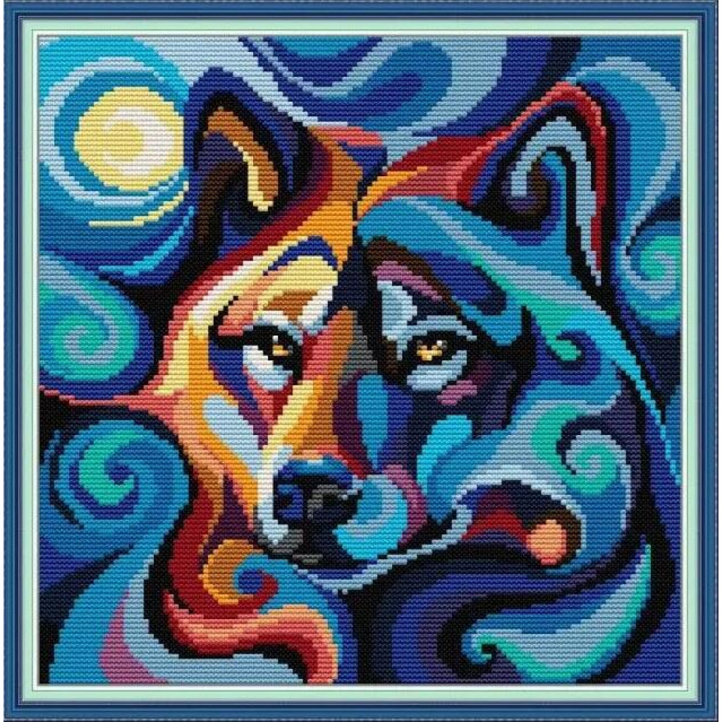 DA865JS Joy Sunday Набір для вишивки друкованим хрестиком - Місячний вовк 31x31 см, Aida14