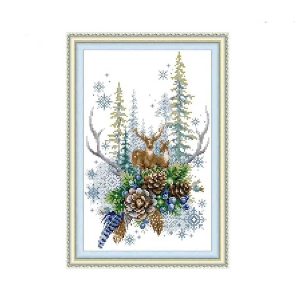 DA919JS Дух зимового лісу, 22х34 см. Joy Sunday. Набір для вишивки хрестиком на канві з нанесеним малюнком