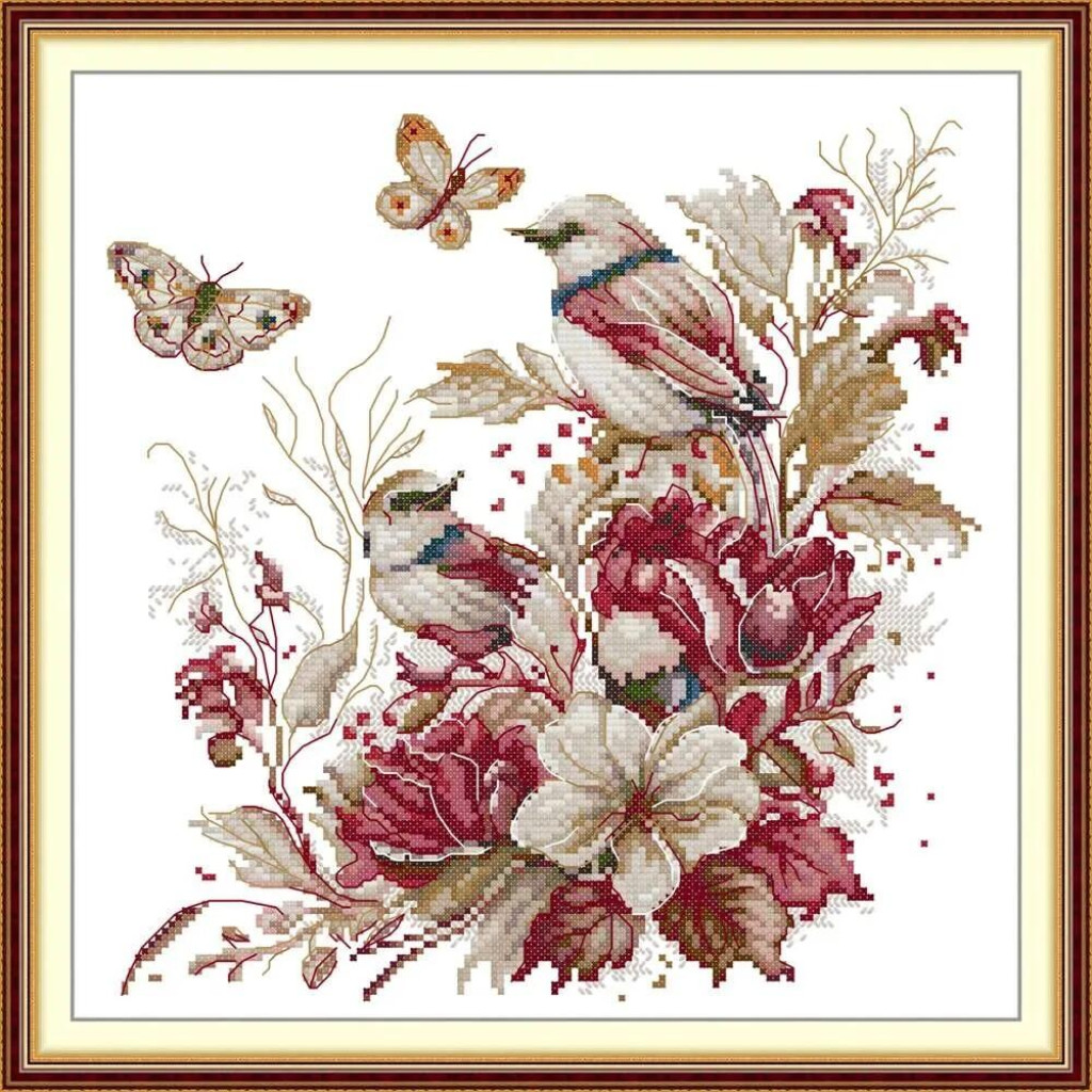 DB111JS Joy Sunday Набір для вишивки друкованим хрестиком - Осінні пташки 33x33 см, Aida14